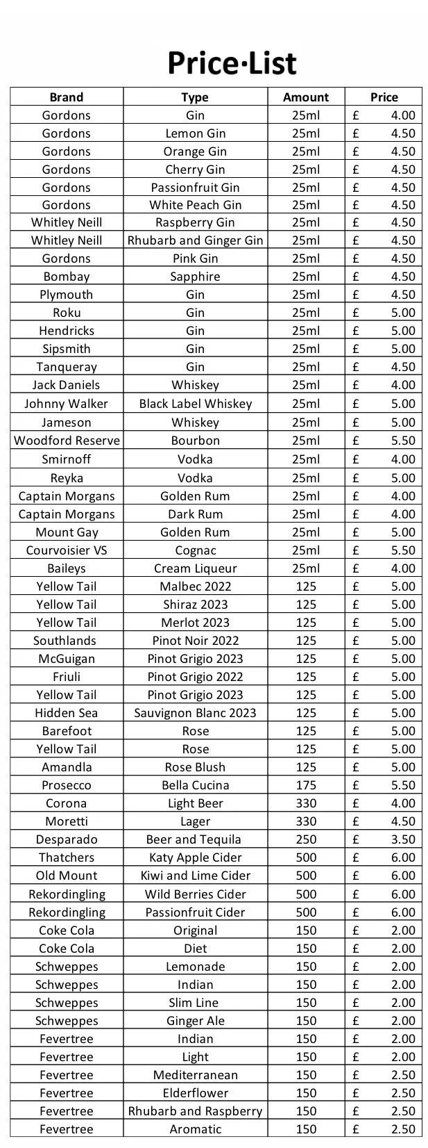Customisable drinks menu